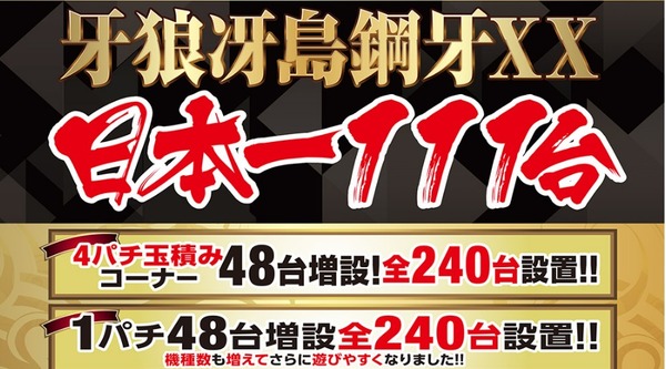 2019-07-08 15:00:00 パチンコ・パチスロ.com 【画像あり】岡山県のパチンコホール「nikko東岡山店」牙狼冴島鋼牙を111台導入、日本一牙狼の新台を入れたホールに [詳細] |