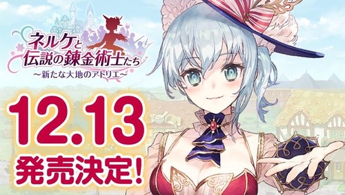 2018-08-31 19:00:00 えび通 アトリエ新作「ネルケと伝説の錬金術士たち」発売日が12/13に決定!アトリエシリーズ歴代キャラ出演の集大成!! [詳細] |