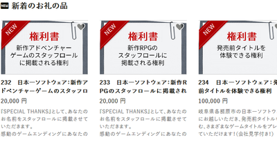 2018-07-28 09:52:00 ゲーハーKING速報 岐阜・各務原市の「ふるさと納税」に日本一ソフトウェアの返礼品「新作RPGの村人メッセージを決定できる権利」など6種が追加されるがどれも価格が高すぎると話題に [詳細] |