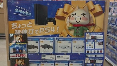 2018-11-23 11:43:00 ゲーハーKING速報 【激安】イオンでPS4本体にソフト2本セットになって超お買い得になったブラックフライデーセールが開催「今年の冬はちょっと背伸びでPS4!」安すぎww [詳細] |