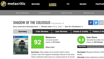 2018-02-16 21:17:00 ゲーハーKING速報 『ワンダの巨像』がなぜ世界中で支持されているのか?上田文人氏「一時的な脚光や販売本数に惑わされず高い志を持って制作したから今も愛されている」リメイク版も絶賛爆売れ中!! [詳細] |