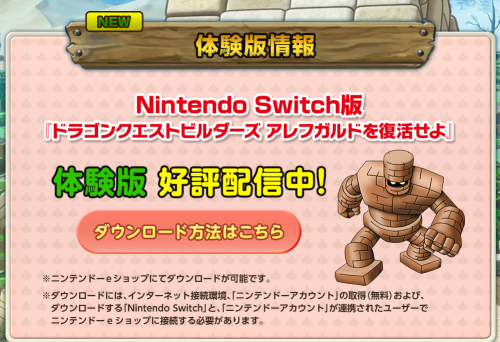 2018-02-01 15:50:00 えび通 Switch版「ドラゴンクエストビルダーズ」 体験版が本日配信開始!DL組から好評の声 「Vitaと違って携帯時でもグラ綺麗」 [詳細] |
