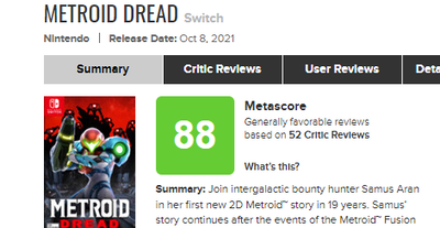 2021-10-07 06:43:00 ゲーハーKING速報 『メトロイドドレッド』海外レビュー、メタスコア88点スタート! 「史上最高のメトロイドゲーム」「すべてのスイッチユーザーにとってマスト」大絶賛の嵐 [詳細] |