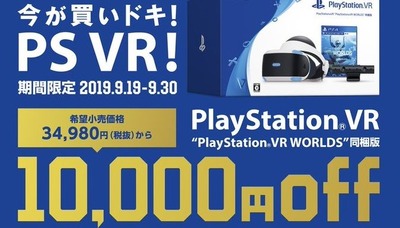 2019-09-17 19:05:00 ゲーハーKING速報 SIE「今が買いドキ!PS VR!キャンペーン」を9月19日から期間限定で実施!PSVR、PSカメラ、PSVRタイトルがついて1万値引きの25000円に!! [詳細] |
