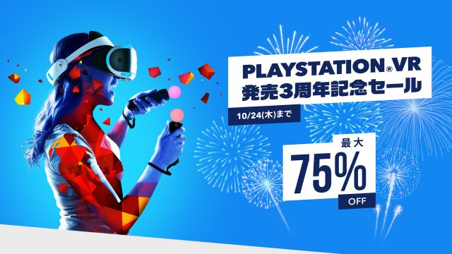 2019-10-11 12:40:00 PS4速報! 最大75%OFF!『PSVR発売記念3周年セール』PSストアで本日より実施!アストロボットやデラシネ、ボダラン2VR、狼と香辛料VRなどがお買い得価格に! [詳細] |
