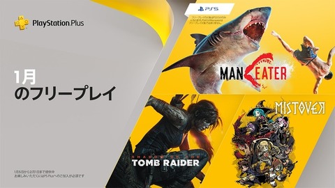 2020-12-31 21:00:00 ゲーム感想・評価まとめ@2ch 1月のPS+フリープレイに「Maneater(PS5のみ)」「シャドウオブザトゥームレイダー」「Mistover」が登場! [詳細] |