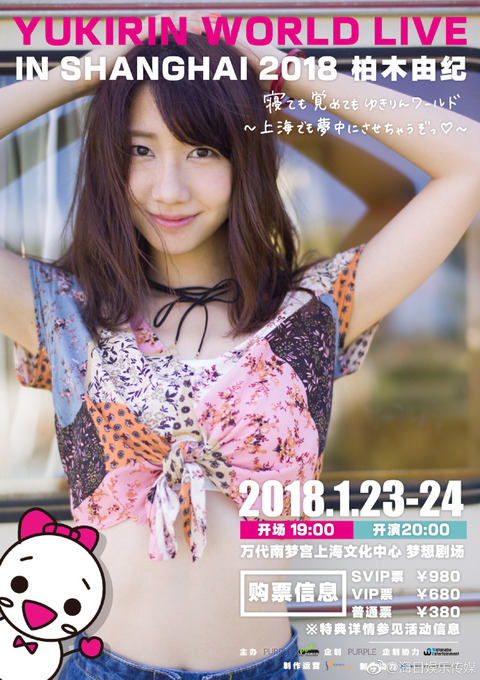 2017-12-19 11:03:00 地下帝国-AKB48まとめ 【朗報】柏木由紀、上海で初のソロコンサート開催決定!【YUKIRIN WORLD LIVE IN SHANGHAI 2018】 [詳細] |
