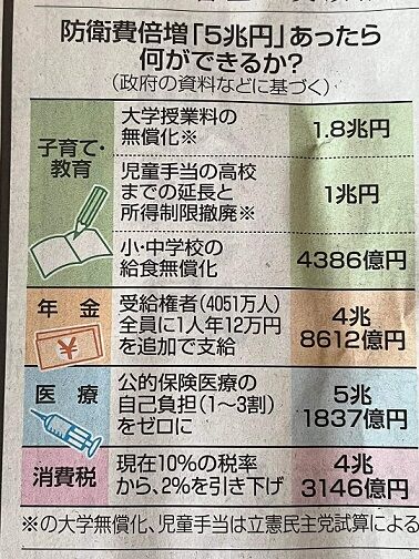 2022-06-05 22:26:00 市況かぶ全力2階建 東京新聞の「防衛費5兆円があれば何ができるか」記事、むしろ年金を減らせば大抵のことができることを際立たせる結果に [詳細] |