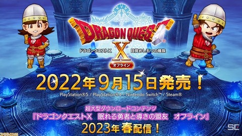 2022-06-22 00:00:00 ゲーム感想・評価まとめ@2ch 【ドラクエ10】『ドラゴンクエストX 目覚めし五つの種族 オフライン』が9/15に発売決定 拡張DLC『眠れる勇者と導きの盟友』は来春配信 [詳細] |