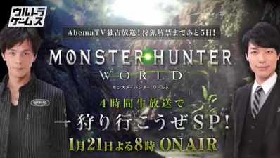 2017-12-21 22:22:00 ゲーハーKING速報 『モンスターハンター:ワールド4時間生放送で一狩り行こうぜSP!』が2018年1月21日20時より AbemaTVで独占放送決定!! [詳細] |