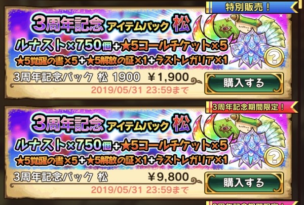 2019-05-05 20:30:00 Y速報 スマホゲー「アプリが3周年記念なので1万円以上の詰め合わせを9800円で販売します!」←間違えて1900円にしてしまう [詳細] |