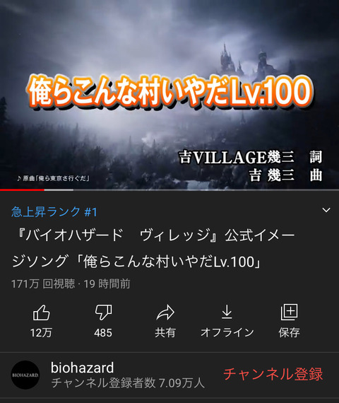 2021-04-26 19:00:00 ゲーム感想・評価まとめ@2ch 【朗報】「バイオハザード ヴィレッジ」と吉幾三のコラボ動画「俺らこんな村いやだLv.100」、わずか3日で370万再生! [詳細] |