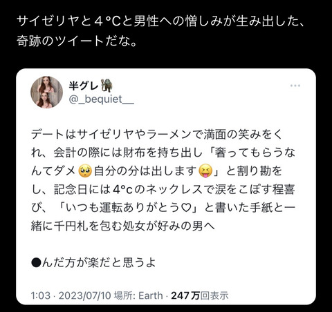 2022-07-01 17:39:00 鬼女まとめログ|生活2chまとめブログ 【後悔】私の誕生日、彼氏「私子!レストランを予約したから一緒に行こうぜ!」私「ホント!?嬉しいわぁ~♪」→結果、後悔する事に・・ [詳細] |