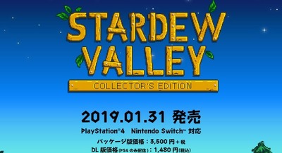 2018-10-22 18:55:00 ゲーハーKING速報 PS4/スイッチ『スターデューバレーコレクターズ・エディション』2019年1月31日に国内発売決定!!PS4DL版もPSストアで配信予定 [詳細] |