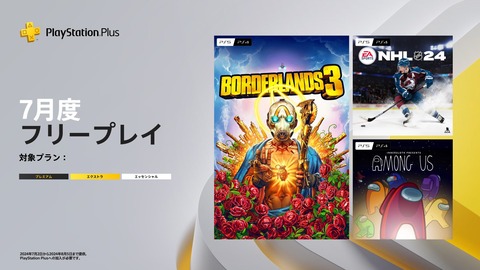 2024-06-27 22:00:00 ゲーム感想・評価まとめ@2ch PSプラス、7月のフリープレイタイトルが公開!『ボーダーランズ3』『NHL 24』『Among Us』が登場! [詳細] |