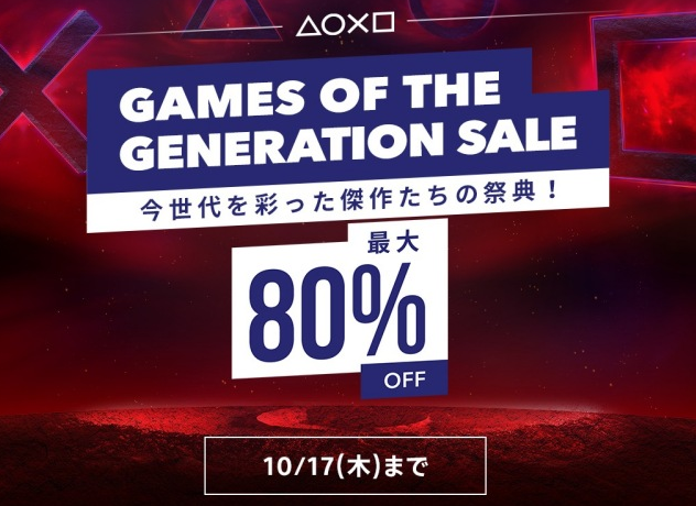 2019-10-04 16:03:00 PS4速報! 最大80%オフ!『Games of the Generation Sale』PSストアにて開催!スパイダーマンGOTY31%OFFなど今世代の傑作がお買い得に! [詳細] |