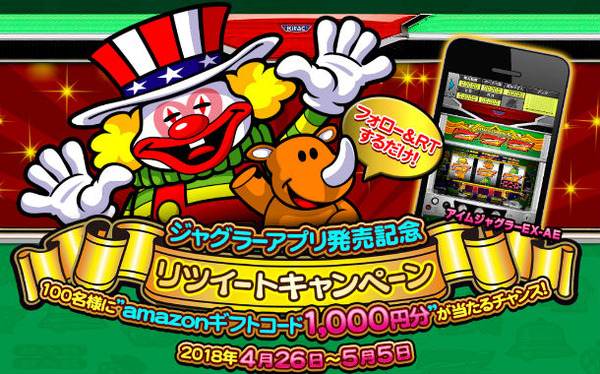 2018-05-02 20:00:00 ぱちんこドキュメント!! 【懸賞】『ジャグラーアプリ発売記念』リツイートでAmazonギフト、オリジナルスピーカーが当たるキャンペーン開催中! [詳細] |
