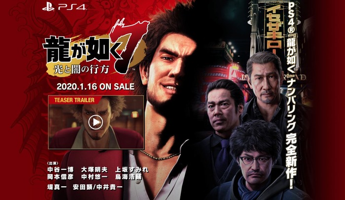2019-08-29 14:17:00 PS4速報! PS4『龍が如く7 光と闇の行方』ティザートレーラーと公式サイトが公開!ストーリーや舞台、バトルシステム、登場キャラのプロフィール情報などが明らかに!コマンドバトル映像も [詳細] |