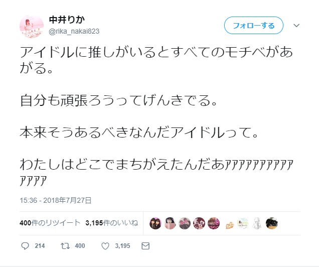 2018-07-28 13:43:00 AKB48タイムズ(AKB48まとめ) 【NGT48】「欅坂46のアンビバレントのMV見た!何より推し(平手友梨奈)が尊すぎた!!わたしはどこでまちがえたんだあアアアアアアアアアアアアアア」【りか姫】 [詳細] |