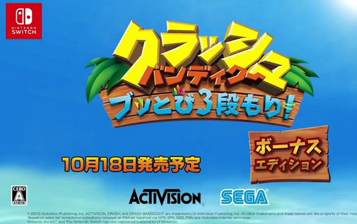 2018-10-01 11:20:00 えび通 Switch版「クラッシュバンディクー ブッとび3段もり!ボーナスエディション」紹介トレーラーが公開!10/18発売 [詳細] |