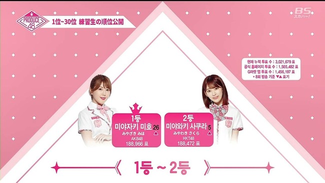 2018-08-11 11:49:00 AKB48タイムズ(AKB48まとめ) 【韓国】PD48順位速報 1位宮崎美穂 2位宮脇咲良 4位竹内美宥 6位下尾みう 7位矢吹奈子 9位本田仁美【PRODUCE48】 [詳細] |