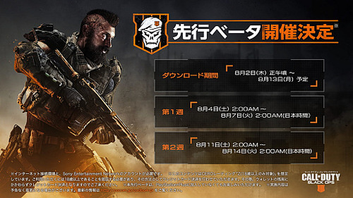 2018-07-23 19:25:00 えび通 PS4版「コール オブ デューティ ブラックオプス 4」 マルチプレイ先行βテストが8/4から開催決定!9月にはバトルロイヤルモードテストも [詳細] |