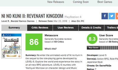 2018-03-24 16:53:00 ゲーハーKING速報 【神ゲー】『二ノ国2』全世界のゲーマーから高評価を獲得!さらにAmazonレビューでも星5連発「こんなRPGを待ってた」「まさに王道RPG」と絶賛の声 [詳細] |