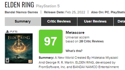 2022-03-09 07:49:00 ゲーハーKING速報 海外メディア「『エルデンリング』のメタスコアが高いのは高難易度すぎてフロム信者以外はレビュー出来ないし必然的にスコアが上方修正される」 [詳細] |