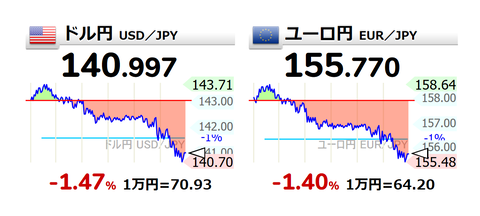 2023-05-29 12:19:00 稼げるまとめ速報 【為替相場】週明け、ドル円は一時141円に迫るも一旦押し戻される 日経平均上昇 米債務上限問題一時解消、利上げ期待により 本日米市場は休場 [詳細] |