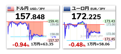 2024-05-29 21:30:00 稼げるまとめ速報 【相場】為替市場、ドル円・クロス円に一瞬材料無しで謎の下げが入る 1ドル157円台 引き続き大きな円高材料はなし [詳細] |